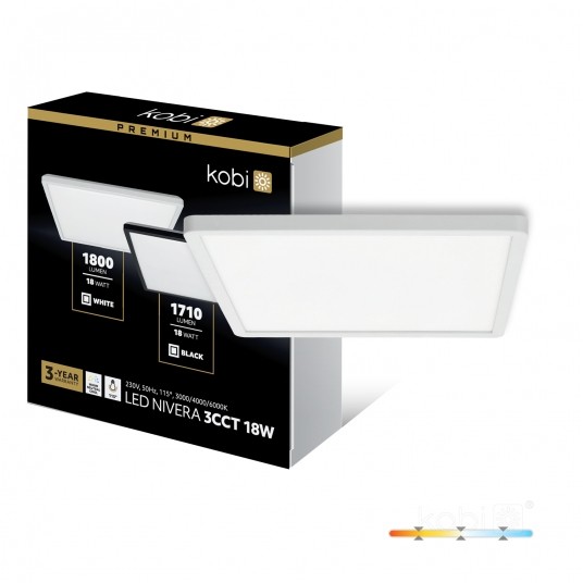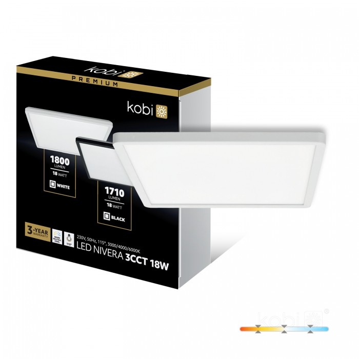 Ceiling lamp LED NIVERA SQUARE 18W 3CCT IP54 white Kobi Premium