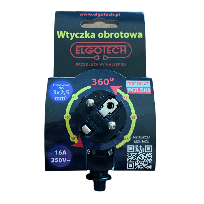 Grounded swivel plug WT-07-2 360°/45° 16A/250V black