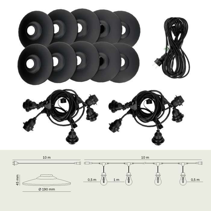 SET CRETE Garland 10m + cable 10m + 10x lampshade M2