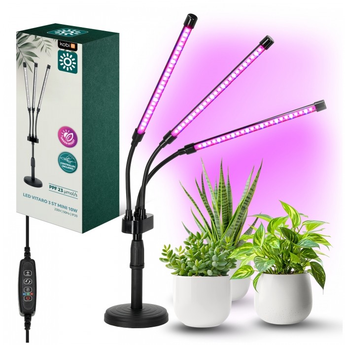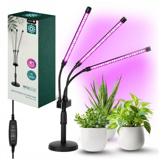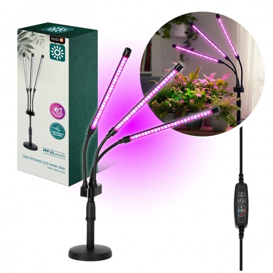 3 light colours to choose from: blue (400-500nm) – used mainly in the initial growth phases, red (600-700nm) – supports flowering and fruiting, and a combination of these two colours – light similar to natural sunlight,