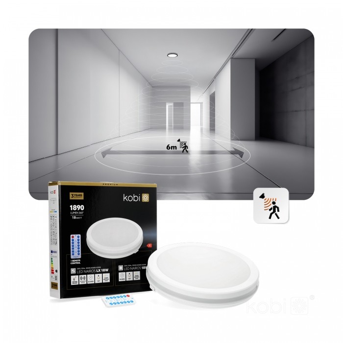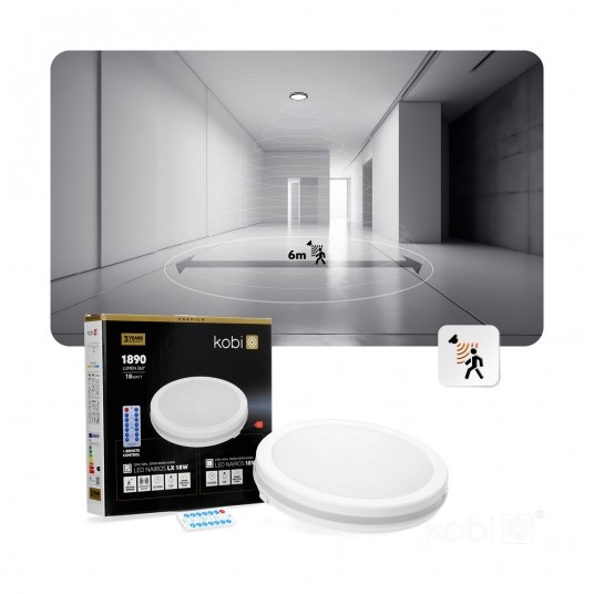 - sufitowa oprawa ledowa z czujnikiem ruchu i zmierzchowym o trzech zakresach regulacji: czas działania, natężenie światła i zasięg detekcji,