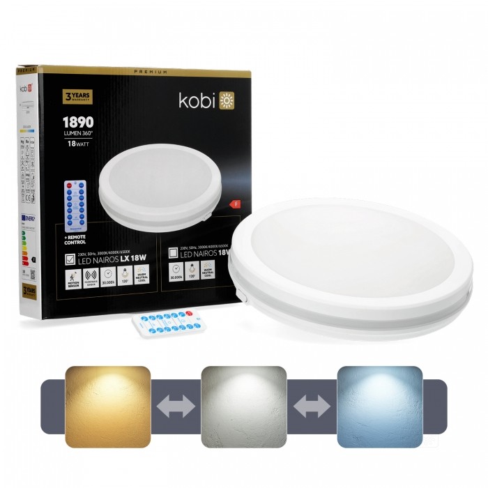 - z możliwością zmiany barwy światła: 3000K, 4000K lub 6500K za pomocą suwaka na spodzie oprawy,