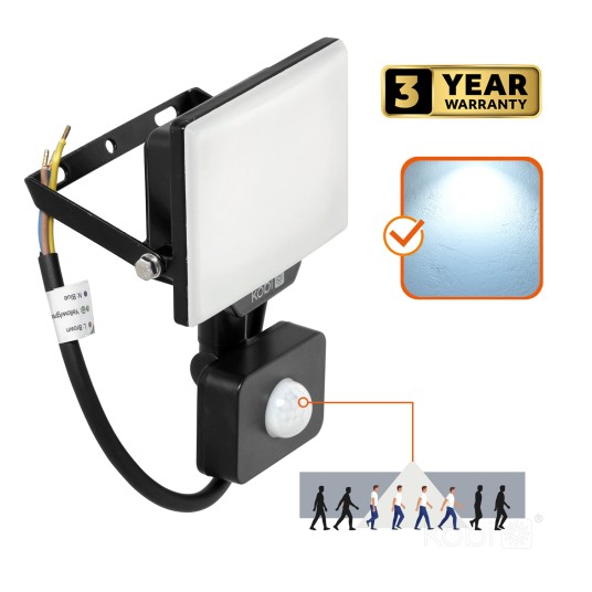 Naświetlacz LED DELYO MHNC 20W Kobi Premium w wersji zimnobiałej 6000K to niezawodne i energooszczędne rozwiązanie, które gwarantuje jasne, kontrastowe światło – idealne do poprawy bezpieczeństwa i komfortu w otoczeniu domu.