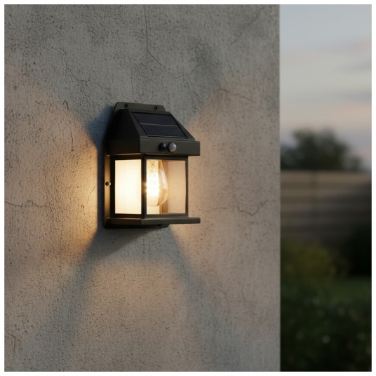 Kinkiet ogrodowy OMVIA to nowoczesna, solarna lampa LED wyposażona w czujnik ruchu i zmierzchu. Doskonale sprawdzi się jako oświetlenie elewacji, tarasu, ścieżki czy wejścia do budynku. Dzięki zasilaniu energią słoneczną oraz zintegrowanemu panelowi fotowoltaicznemu działa całkowicie bezprzewodowo, zapewniając wygodę i oszczędność energii.