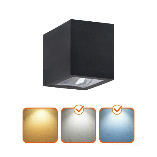 Kinkiet ogrodowy QUERK 2CCT to nowoczesna lampa solarna LED z możliwością wyboru jednej z dwóch barw światła: ciepłej 3000K lub neutralnej 4000K. Dzięki zasilaniu energią słoneczną, automatycznemu działaniu o zmierzchu oraz solidnym materiałom (aluminium i poliwęglan) doskonale nadaje się do oświetlania przestrzeni zewnętrznych — fasad, wejść, tarasów i ogrodowych ścieżek.