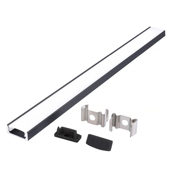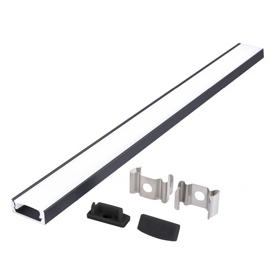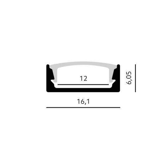 Aluminium | Przesłona PC | Długość profilu 2 m | Max. szerokość taśmy 12 mm