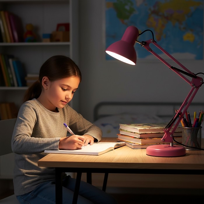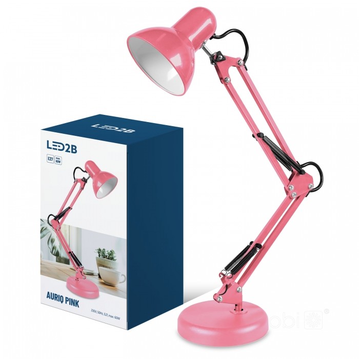 Lampka biurkowa AURIQ 1xE27 różowa LED2B – klasyczna forma i pełna swoboda ustawienia