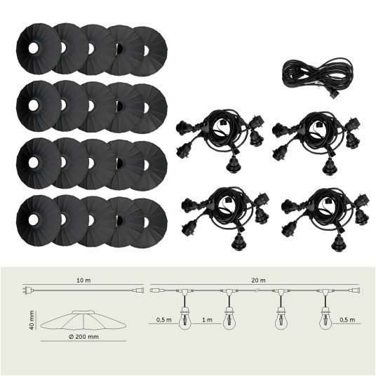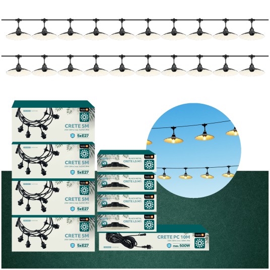 ZESTAW CRETE Girlanda ogrodowa 20m + kabel 10m + 20x klosz M1