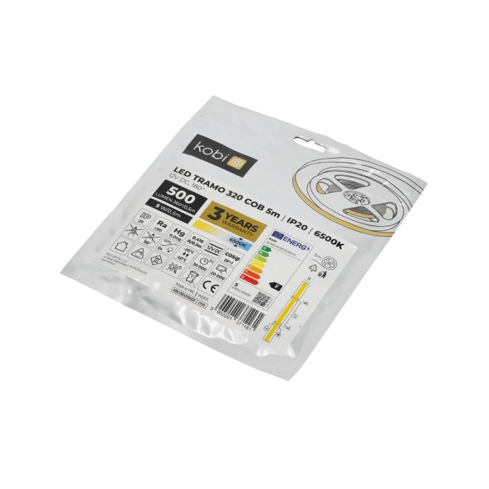 Taśma LED TRAMO 320 COB 5m 6500K 12V IP20 Kobi Premium